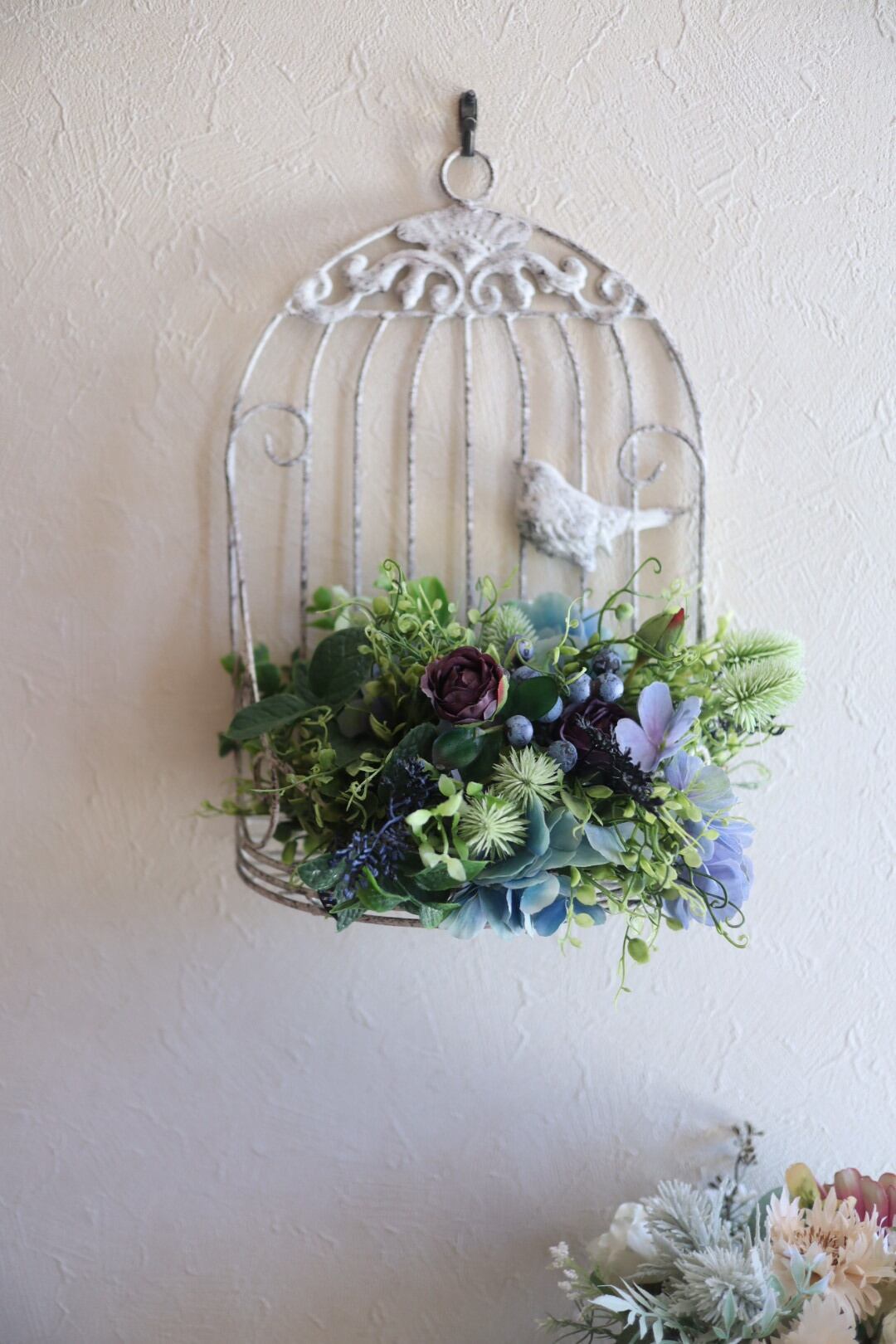 シンプルなお部屋の余白にも、すっきりと馴染む鳥かごアレンジをご検討下さい。