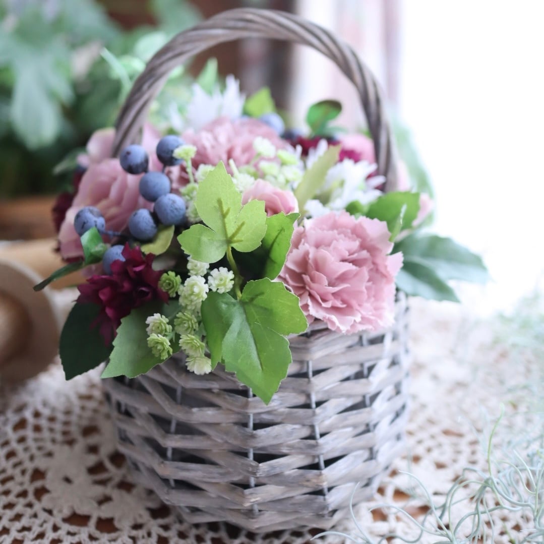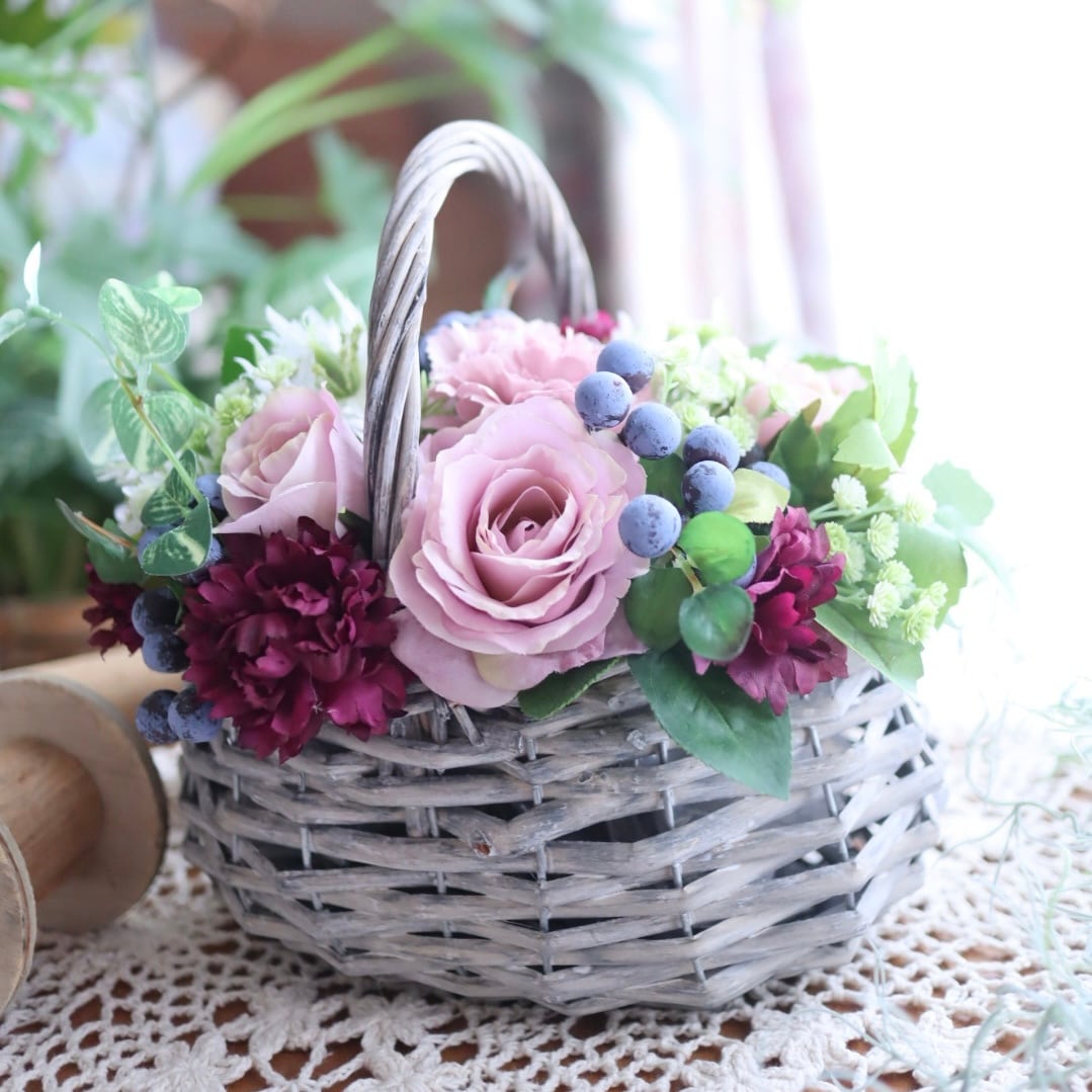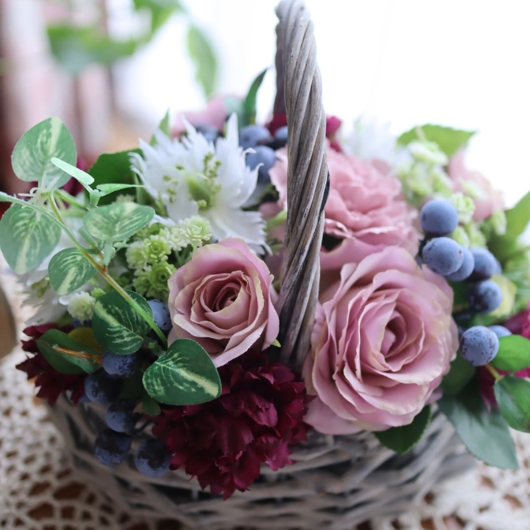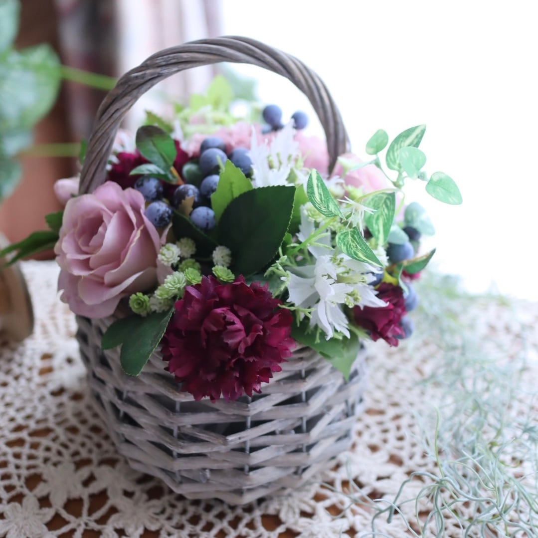 ギフトとしてちょうどいいサイズ感の、バスケットアレンジです。