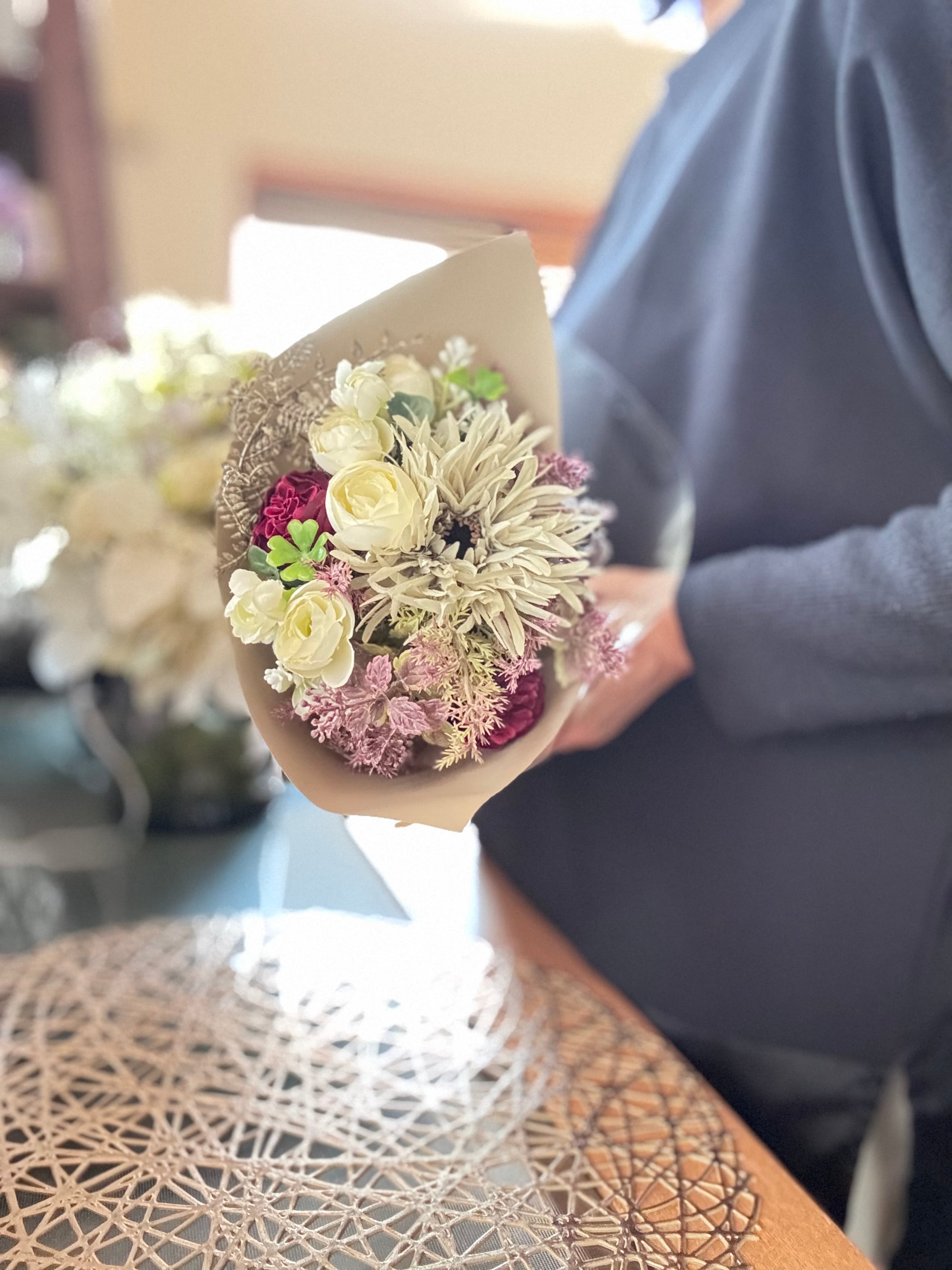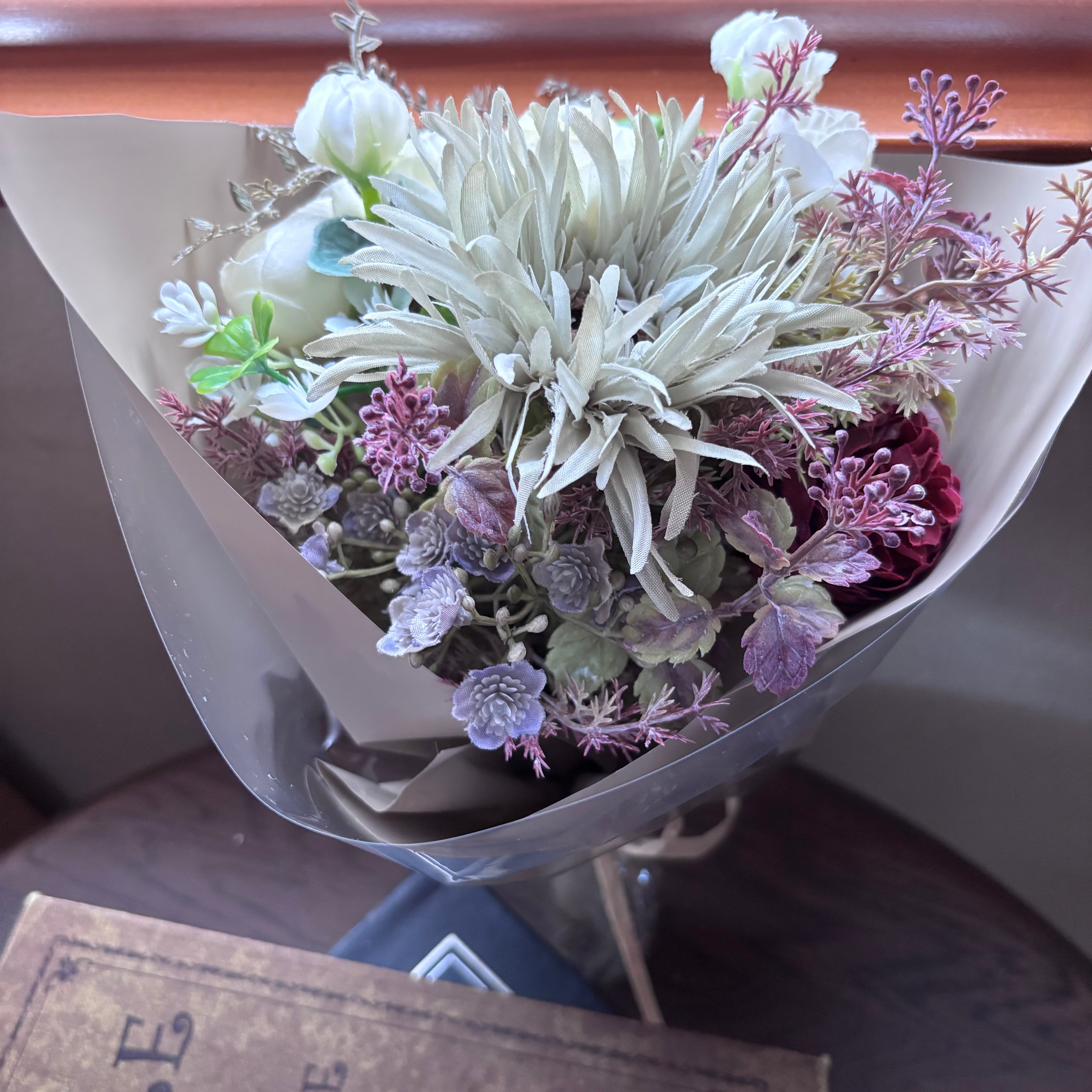 そんなお悩みに、今年はアーティフィシャルフラワーのミニブーケはいかがですか?